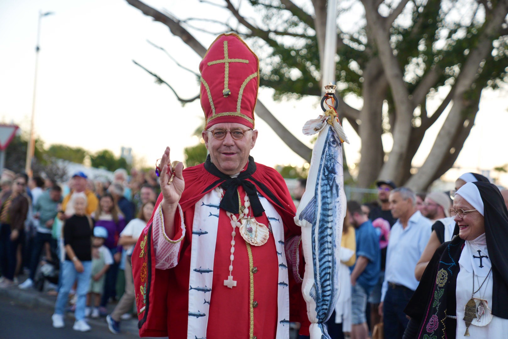 El cortejo fúnebre estuvo presidido por algunos de los personajes icónicos de esta festividad, encabezados por el Obispo del Carnaval, quien este año celebró su 15º aniversario participando ininterrumpidamente en este acto. Junto a él, el cura, las monjas y una legión de desconsoladas viudas protagonizaron los lamentos y llantos de rigor que, lejos de entristecer, arrancaron constantes sonrisas al público durante todo el recorrido. Cabe resaltar que la sardina, de la que ya solo quedan sus fotos, fue una obra de arte efímero diseñada por Masbe Creaciones, y elaborada con la colaboración de la Asociación «Los ángeles de techar una mano» de El Tablero. Como dato curioso de esta edición, la sardina no pudo ser rescatada el viernes, como marca la tradición, debido a la cancelación de dicho acto por los fenómenos meteorológicos adversos que afectaron a la zona días atrás.