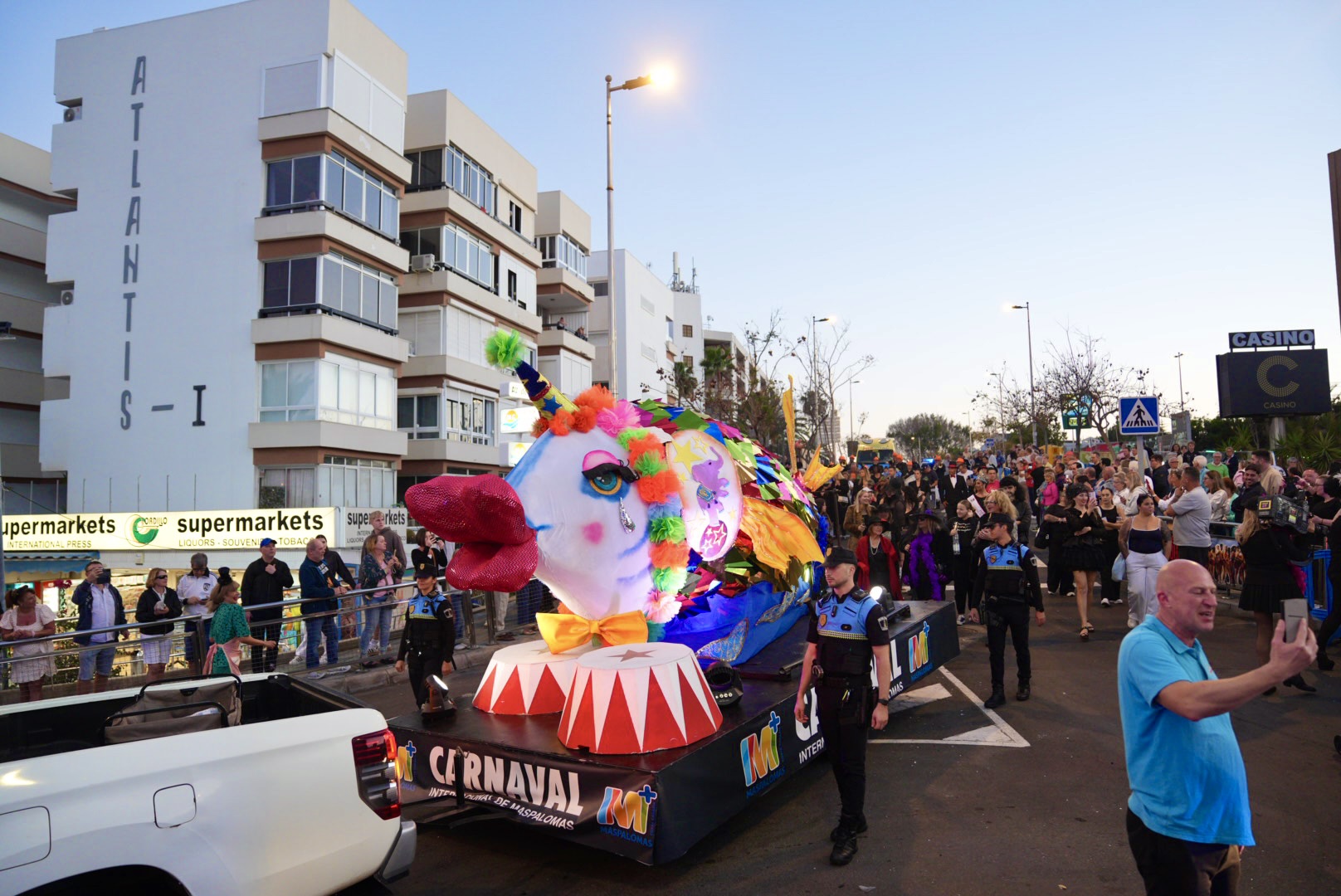 El Carnaval Internacional de Maspalomas 2026 ha bajado hoy el telón con la celebración del Entierro de la Sardina y un concierto tributo a Juan Luis Guerra. Tras semanas de intensa actividad bajo la alegoría de “El Mundo del Circo”, la comitiva fúnebre partió desde el Centro Comercial Yumbo con destino al Anexo de Playa del Inglés, rodeada de una multitud de curiosos, especialmente turistas que disfrutaron del duelo satírico y la alegría festiva propia del acto. El desfile contó con la participación de la Banda de Agaete y la Banda Isleña, junto al ritmo de las comparsas Yoruba y Chiramay, y las potentes batucadas Piratas del Caribe y Paixao, que marcaron el paso de una noche en la que el buen tiempo acompañó en todo momento.