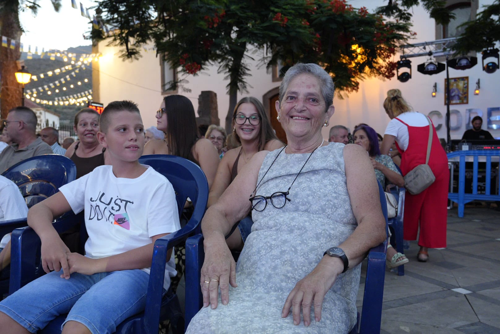 El acto, celebrado en la plaza de Tunte y conducido por el humorista canario Juanka, incluyó la proyección de un video biográfico que recorrió su vida: desde su infancia en una familia numerosa, su educación en Ciudad Jardín, su pasión por la música y la bandurria, hasta la construcción de una familia que ha sido el eje de su vida junto a su esposo Antonio Guerra. El relato también puso en valor su papel en la comunidad: su entrega en la cocina para médicos y vecinos, su espíritu solidario, su simpatía y su incansable disposición a ayudar.