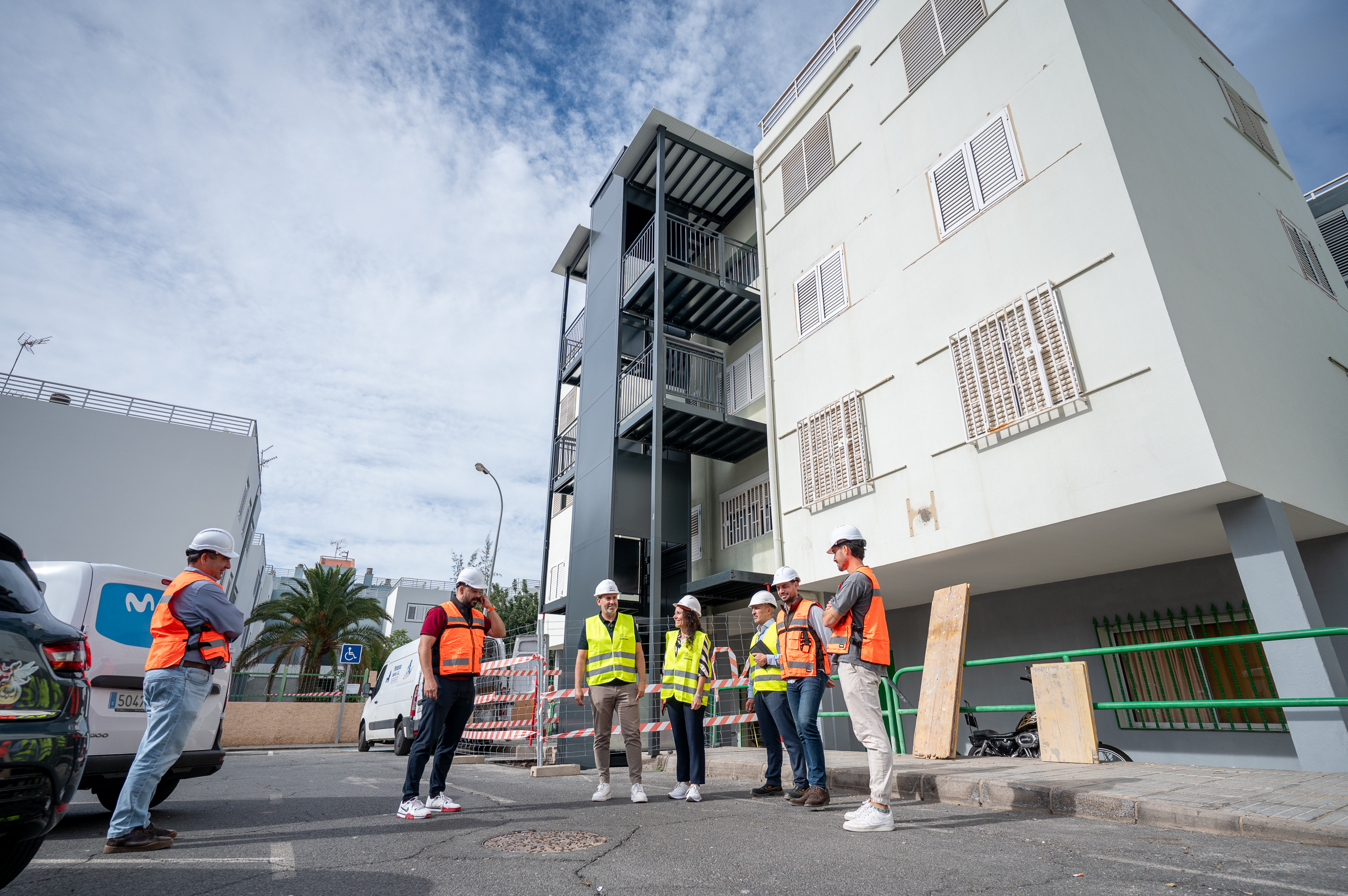 La concejalía de Vivienda ha puesto en marcha la instalación de la estructura de los ascensores en la Urbanización La Paz, en San Fernando de Maspalomas, dentro de las obras de rehabilitación integral que se ejecutan en este Entorno Residencial de Rehabilitación Programada (ERRP). Esta actuación forma parte del proyecto iniciado oficialmente en junio de 2025 y beneficia de manera directa a 132 familias y a 8 locales, incorporando mejoras sustanciales en accesibilidad, habitabilidad y eficiencia energética.