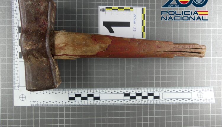 Los agentes realizaron una Inspección Ocular Técnico Policial en el lugar de los hechos, en la que se localizó el arma empleada por el arrestado, un martillo de grandes dimensiones, con evidentes restos de sangre.
