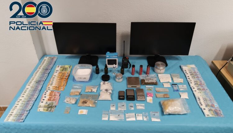Durante el registro del inmueble, los agentes intervinieron 128,39 gramos de MDMA, 22,21 gramos de ketamina, 29,8 gramos de marihuana, 720,91 gramos de metanfetamina, 26 pastillas de éxtasis, una sustancia pulverulenta de aproximadamente 29,15 gramos, aparentemente mefedrona, así como tres botes de popper y un bote con 30 mililitros de líquido incoloro, aparentemente GHB, confirmando la existencia de un punto de venta de droga activo.