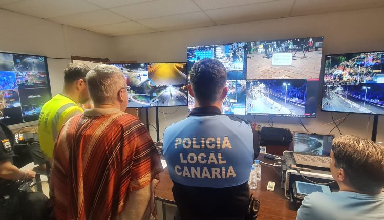 Para el control de llegada y la supervisión de las medidas de seguridad de cada una de las carrozas la Policía Local y Bomberos de Maspalomas establecieron un puesto de mando móvil en la Avenida de la Unión Europea, donde quedó establecido el estacionamiento inicial de las mismas.