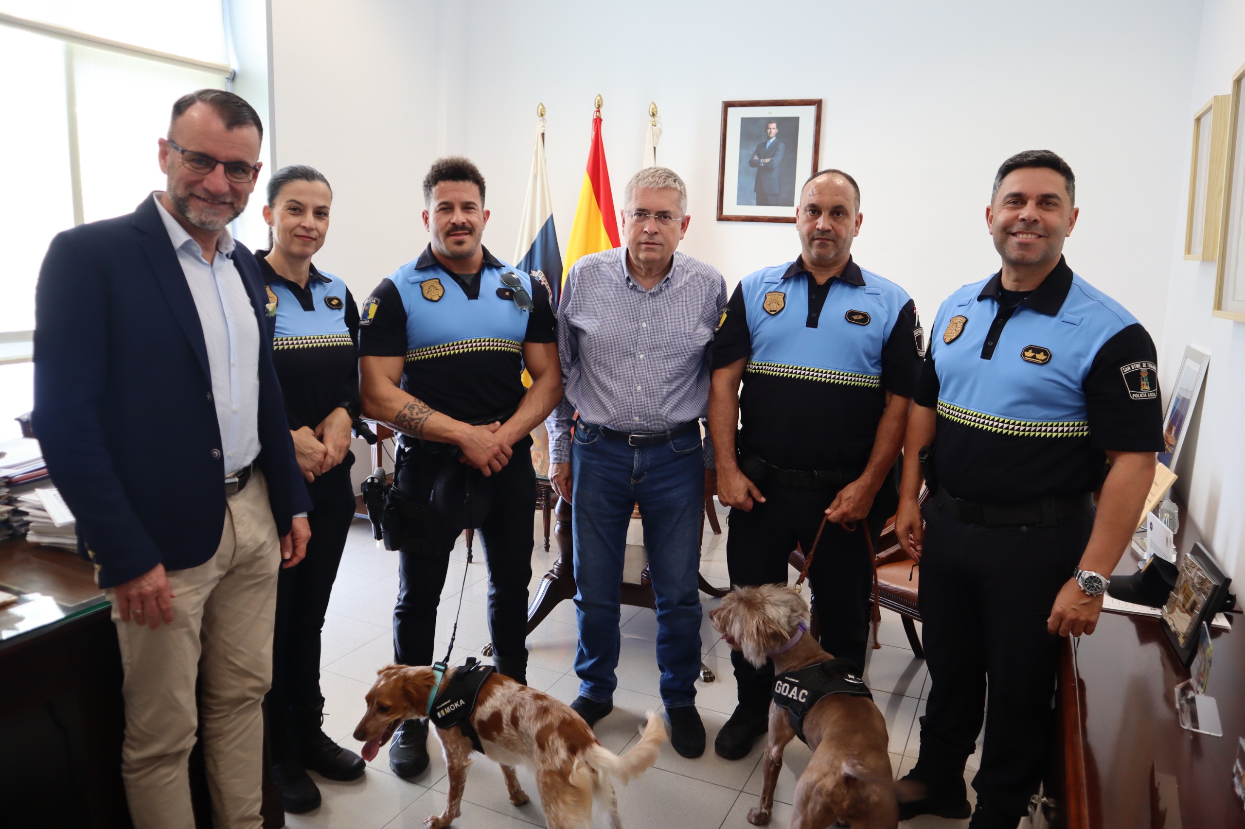Al acto de presentación asistieron, junto a ambos canes, el alcalde Marco Aurelio Pérez y el concejal de Seguridad y Emergencias, José Carlos Álamo Ojeda, así como el agente responsable de Moka, el Comisario Jefe de la Policía Local, el oficial responsable de la Unidad Canina y la oficial responsable de Bienestar Animal.