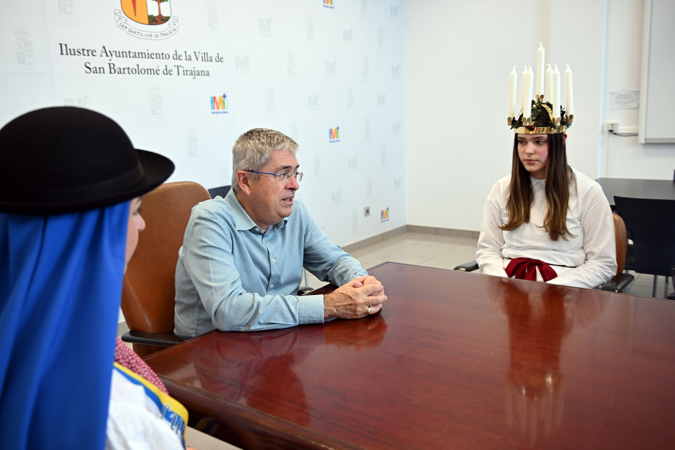El alcalde de San Bartolomé de Tirajana, Marco Aurelio Pérez Sánchez, recibió este miércoles a las lucías suecas y canarias, siguiendo un acto protocolario de cortesía con más de 60 años de antigüedad, que surgió como exponente y reconocimiento del vínculo cordial y de buena vecindad que ha establecido la comunidad sueca con este municipio.