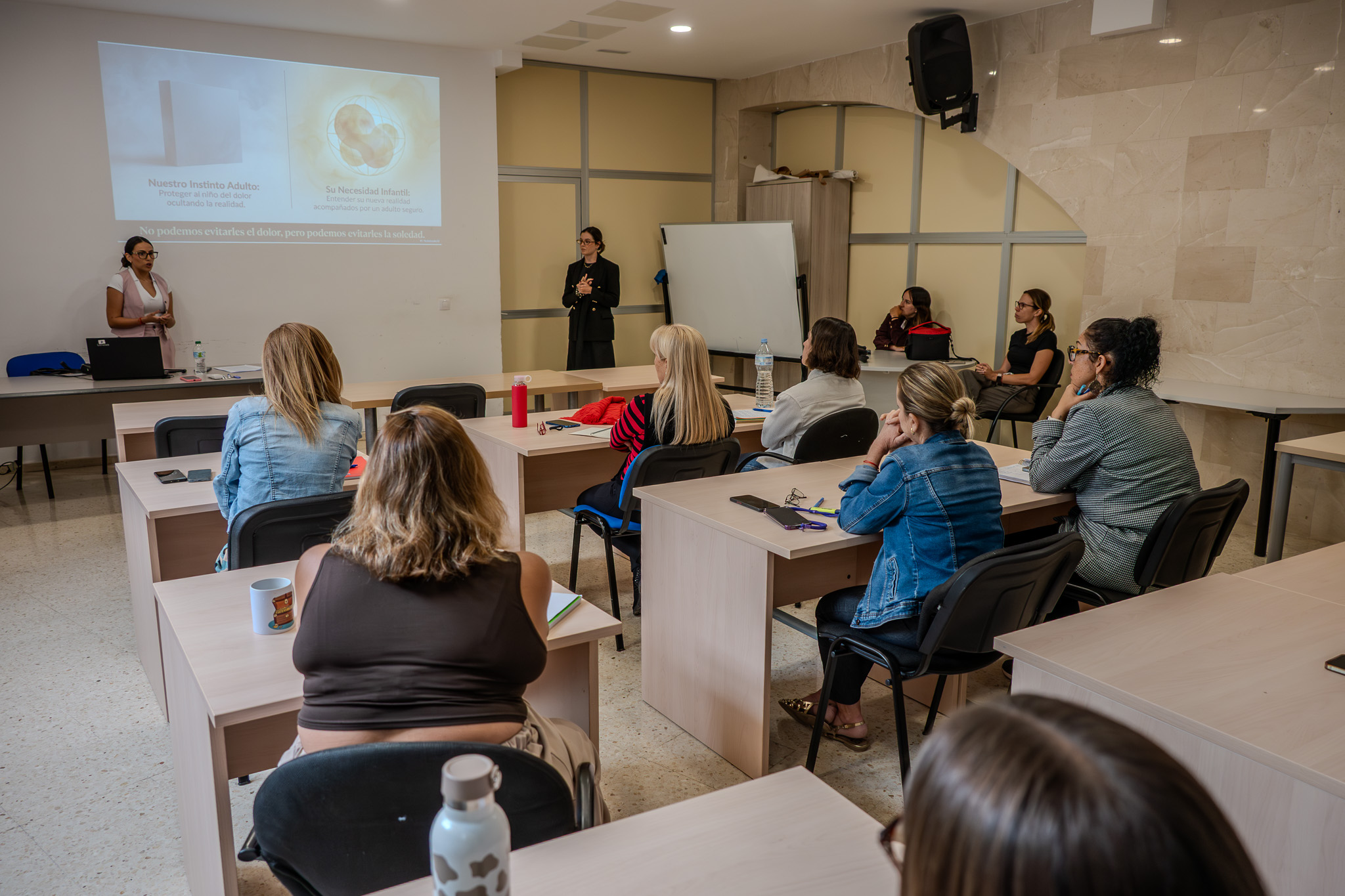 El taller fue impartido este martes, 21 de abril, por profesionales del Centro Quore. Una de las ponentes, la psicóloga Joselyn Herrera, explicó que precisamente este taller se centra en entender el concepto de del duelo, cómo puede afectar en la etapa infantil y cómo abordarlo de manera adecuada. “Es fundamental hablar de ello y ofrecer estrategias tanto a decentes como a los y las profesionales para acompañar este proceso”, dijo, subrayando la importancia de normalizar el tema en la educación emocional. “A veces intentamos evitarlo para proteger del dolor, pero el duelo forma parte de la vida. Aprender a afrontarlo y desarrollar estrategias es esencial, tanto para personas adultas como menores”.