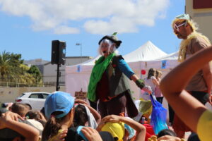 La feria, también dedicada en la sesión matutina a los estudiantes de los institutos de Secundaria, ofertó sesiones de cuentacuentos, talleres de manualidades y una actuación teatral para los más chicos, y para los adolescentes y jóvenes una charla en vivo con la escritora local Gloria T. Dauden (Gran Canaria, 1984), docente del IES Amurga y autora de títulos sugerentes como ‘FAE, El libro de las fantasías eróticas’, ‘Islas de la noche’, ‘La galería de espejos’, ‘Alma de cenizas’ o ‘Volar sin alas’, entre otros, que se convertirá en escritora de lectura obligatoria en varios institutos del municipio durante el próximo curso escolar .